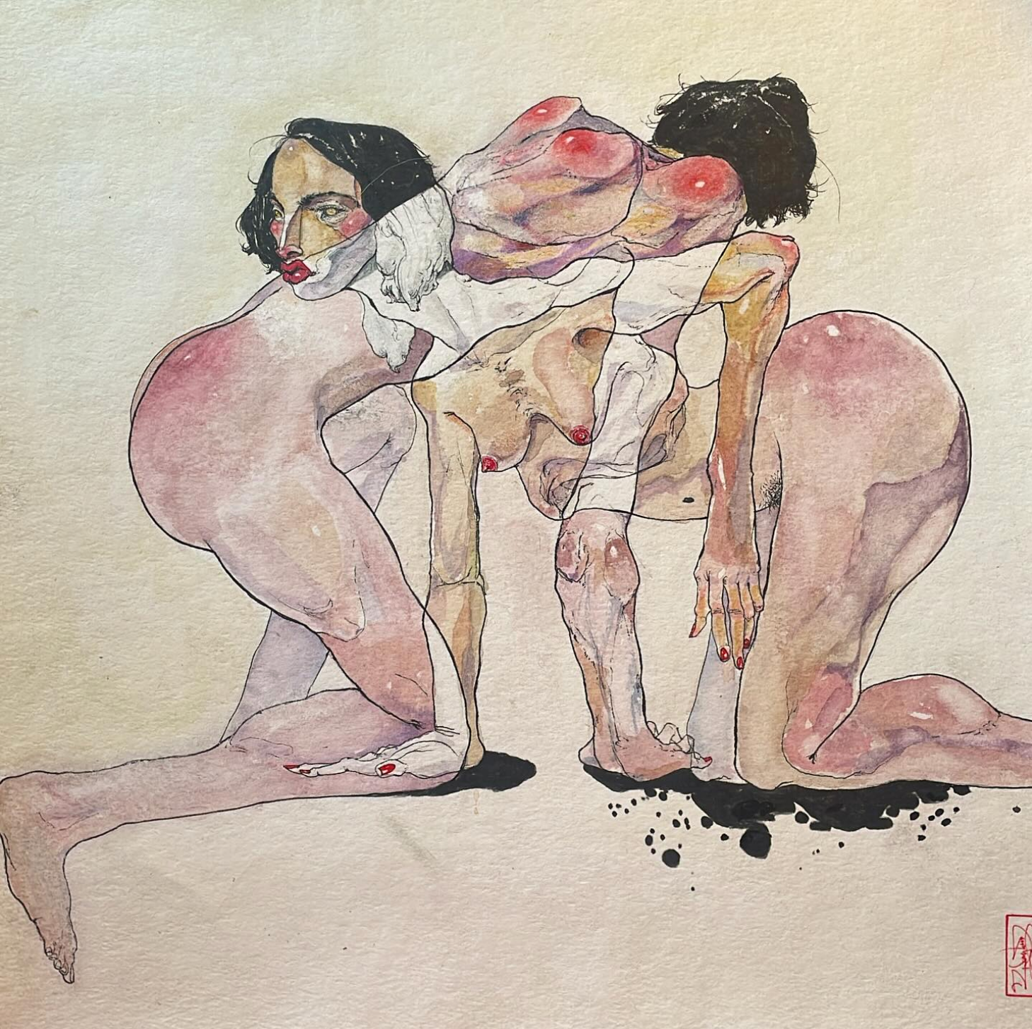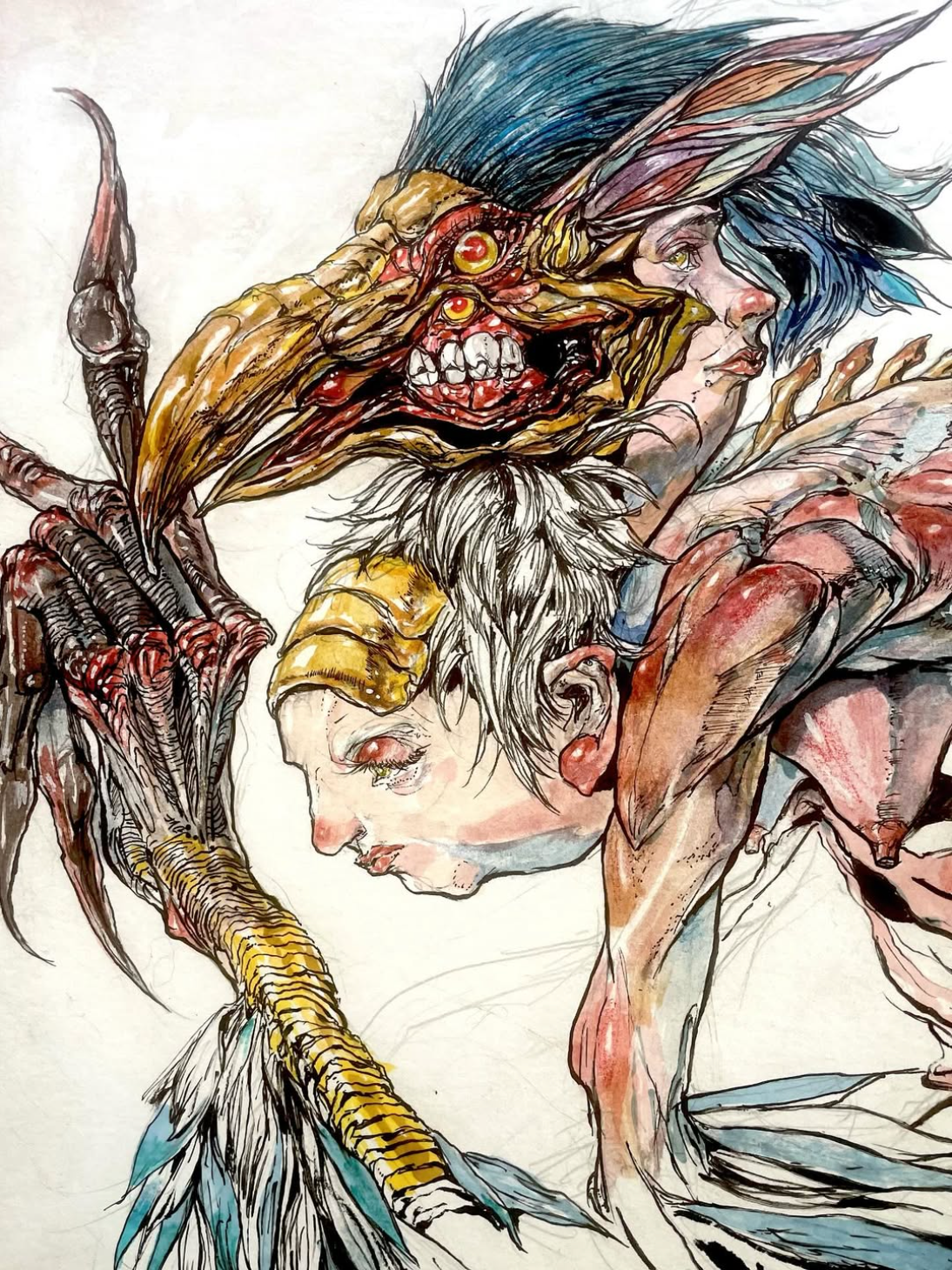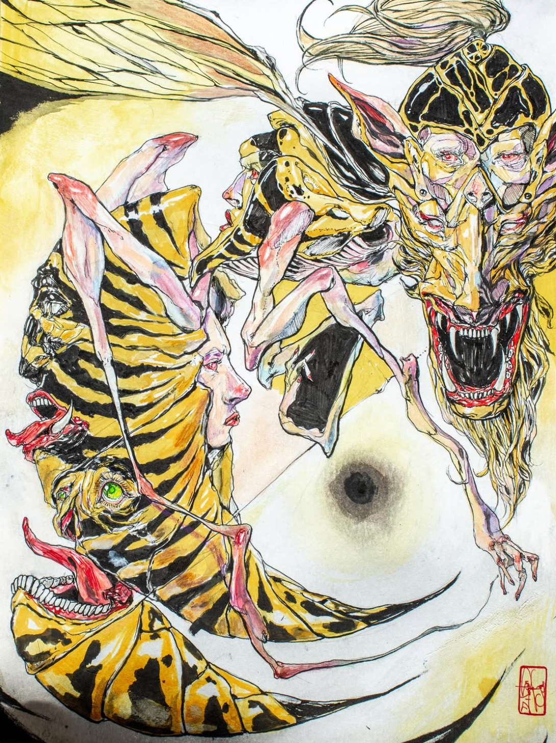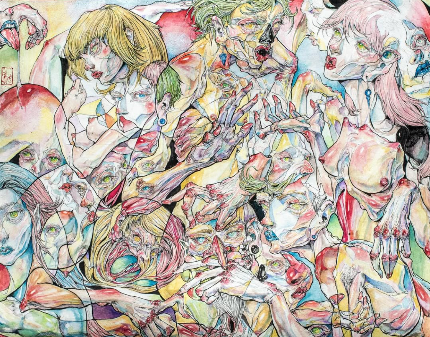 Consistently drawing inspiration from the human form, each piece dives headlong into layered compositions that evoke stained glass murals and body horror in equal parts. With a love of the strange and grotesque, Chu’s work is infatuated with the quiet dignity that can exist in the bizarre. How ugly can something be while still being beautiful?